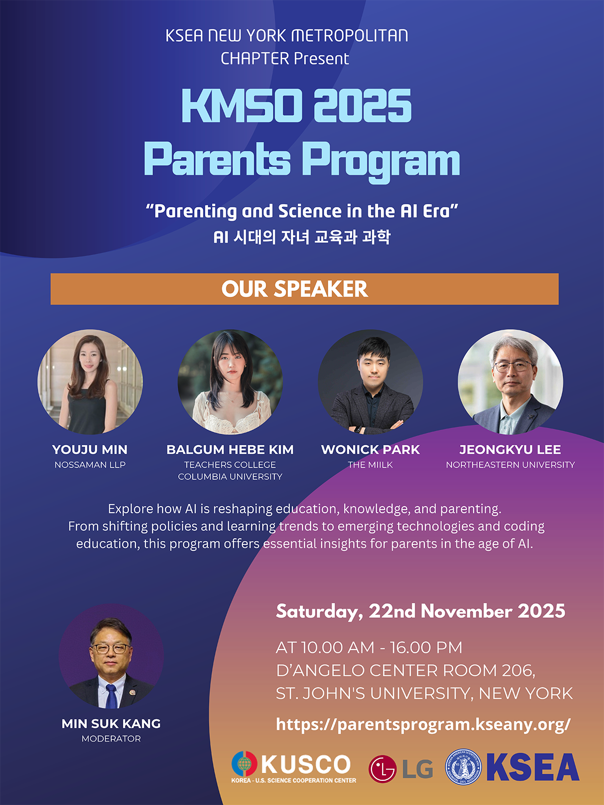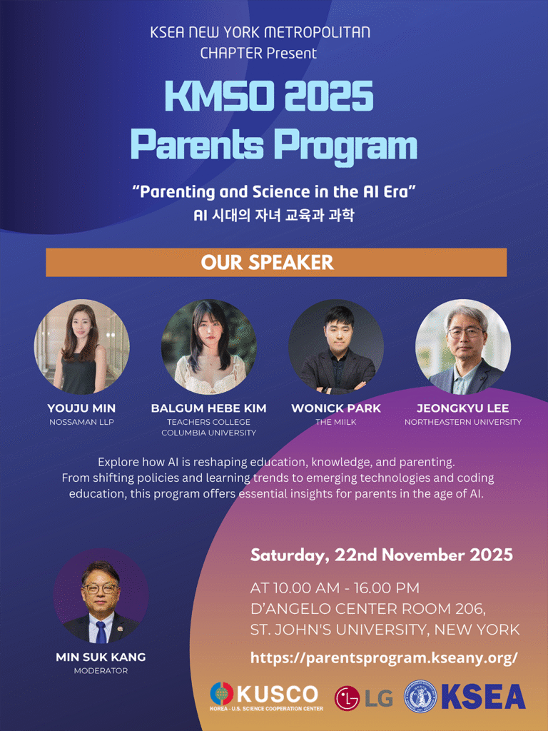KSEA New York Metropolitn Chapter will continue to excel as a catalyst for fostering meaningful network and collaborations for scientists and engineers in the US and Korea. KSEA will continue to be the platform for knowledge-sharing, mentorship, and professional development, empowering the next generation of innovators to realize their full potential. By cultivating a vibrant network of support, we can inspire one another, nurture our talents, and create a lasting impact for our world.
